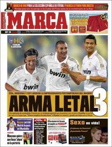MARCA ARMA LETALE 3 – Le prime amichevoli d’estate hanno dato ottime indicazioni al Real Madrid che si ritrova con una vera e propria Arma Letale: secondo quanto riportato da Marca Ozil, Ronaldo e Benzema saranno l’arma in più della squadra di Mourinho.