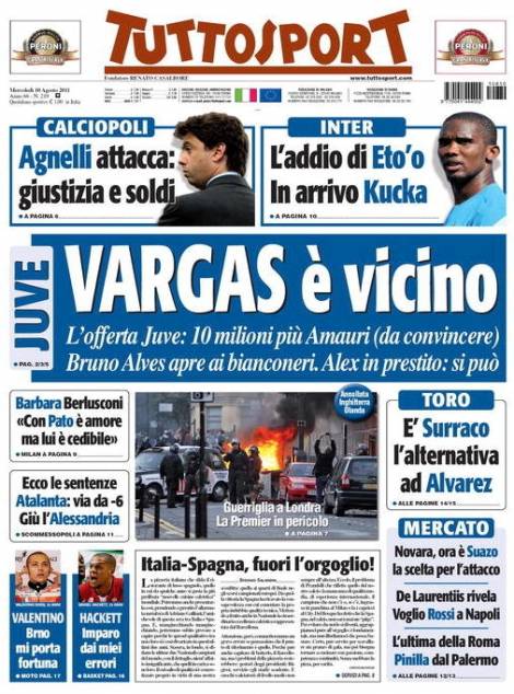 TUTTOSPORT VARGAS – Tuttosport parla del calciomercato della Juventus con il probabile arrivo di Vargas.