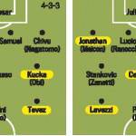 CALCIOMERCATO INTER ETO’O LAVEZZI TEVEZ – L’Inter è ormai pronta a cedere Samuel Eto’o all’Aznhi, società russa che offre 23 milioni di euro per il cartellino del camerunense e 20 milioni di euro al giocatore. L’Inter però pretende almeno 30 milioni di euro e la rinuncia del giocatore al quadriennale potrebbe favore i nerazzurri. La dirigenza dell’Inter ha iniziato i contatti con il Napoli per Lavezzi, potrebbe essere lui il sostituto di Eto’o. Ai partenopei 15 milioni di euro più Pandev. Ma nel mirino c’è anche Tevez. Oltre a questi due dovrebbero arrivare anche Kucka e Palacio. Ecco le due possibili formazioni secondo la Gazzetta dello Sport.