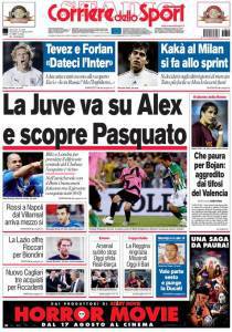 CORRIERE DELLO SPORT JUVENTUS ALEX CHELSEA PASQUATO – La prima pagina del Corriere dello Sport si apre con il mercato della Juventus che sta puntando il difensore brasiliano del Chelsea Alex per il quale servono almeno 10 milioni e inoltre il quotidiano romano elogia il giovane Pasquato, autore di un’ottima prestazione con la maglia bianconera nell’amichevole giocata ieri sera contro il Betis Siviglia e pareggiata a reti bianche.