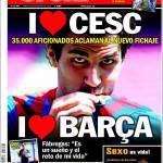 Sport: I love Cesc 16/08/2011 di Ruggieri SPORT FABREGAS – L’altro quotidiano catalano Sport parla di Fabregas che è stato presentato da 30 mila spettatori. Claudio Ruggieri – www.calciomercatonews.com