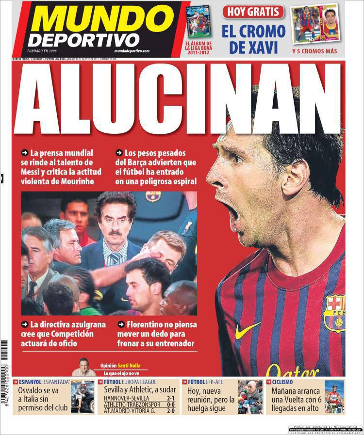 MUNDO DEPORTIVO MESSI – Sul quotidiano Mundo Deportivo usano il termine allucinante sia per elogiare Messi che per criticare il gesto di Mourinho.