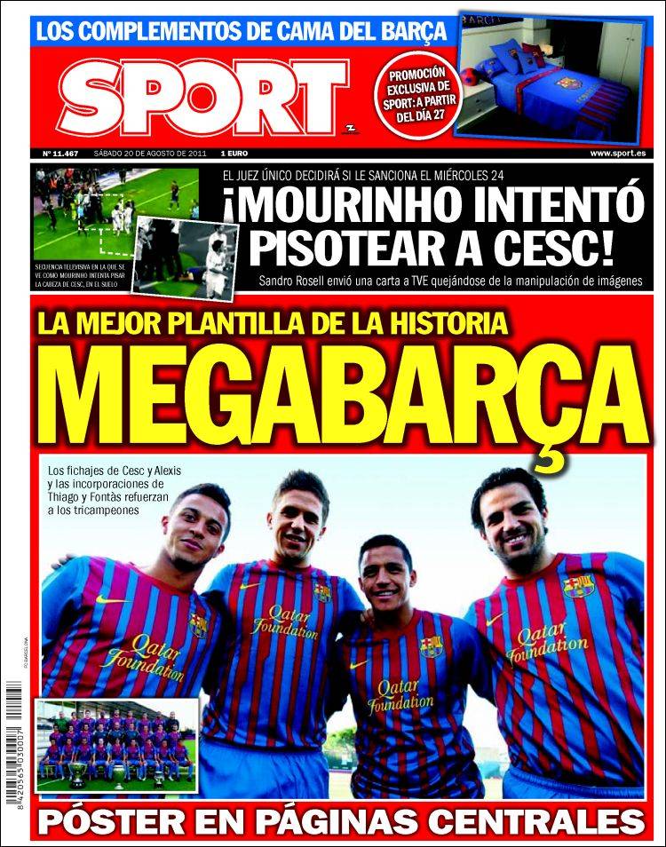 SPORT BARCELLONA – Sul quotidiano Sport si parla della rosa del Barcellona che con gli arrivi di Fabregas e Sanchez è fenomenale.