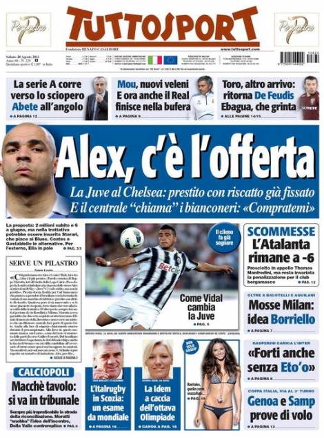TUTTOSPORT ALEX JUVENTUS – Su Tuttosport si parla del possibile arrivo di Alex, centrale brasiliano del Chelsea che piace ai bianconeri.