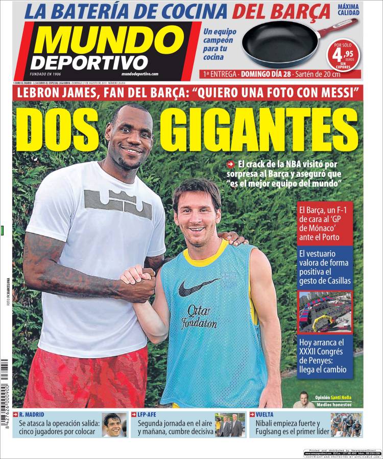 MUNDO DEPORTIVO BARCELLONA MESSI LE BRON JAMES – Il numero odierno del quotidiano spagnolo Mundo Deportivo si apre con la visita del campione Nba dei Miami Heat Le Bron James al Barcellona avvenuta nella giornata di ieri. Una visita a sorpresa nella quale il campione del basket americano ha dichiarato che il Barcellona è la miglior squadra del mondo.