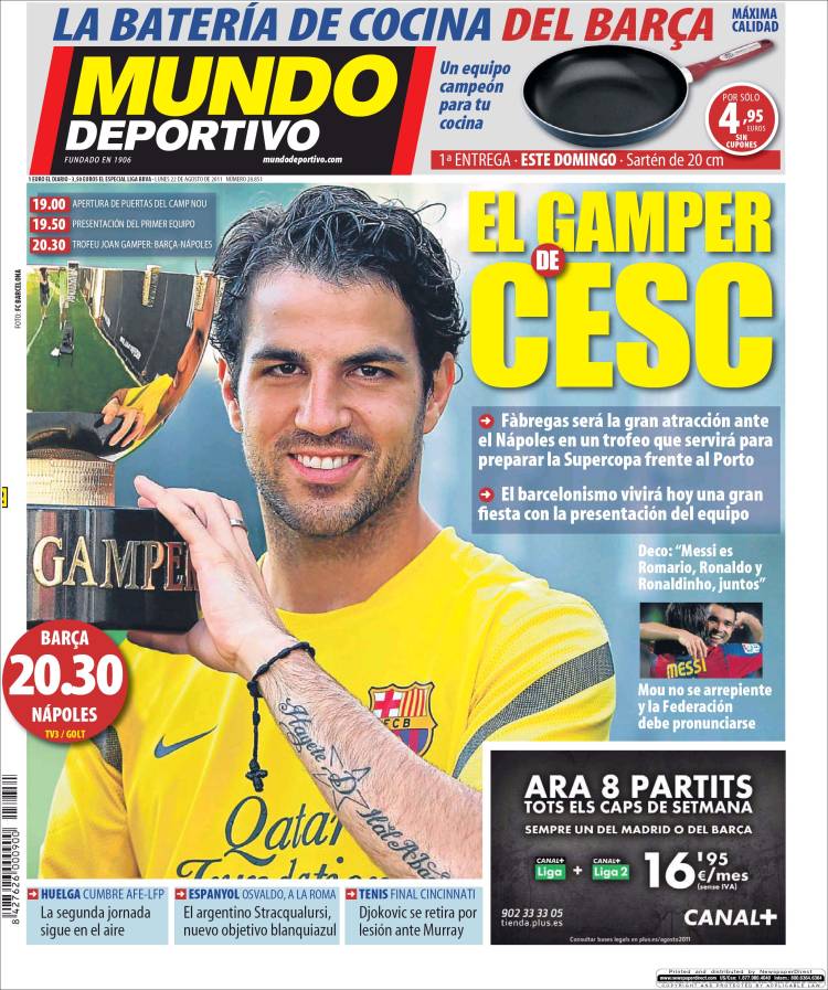 MUNDO DEPORTIVO FABREGAS – Questa sera andrà di scena il trofeo Gamper con il Barcellona che ospiterà il Napoli. In campo ci sarà Fabregas.