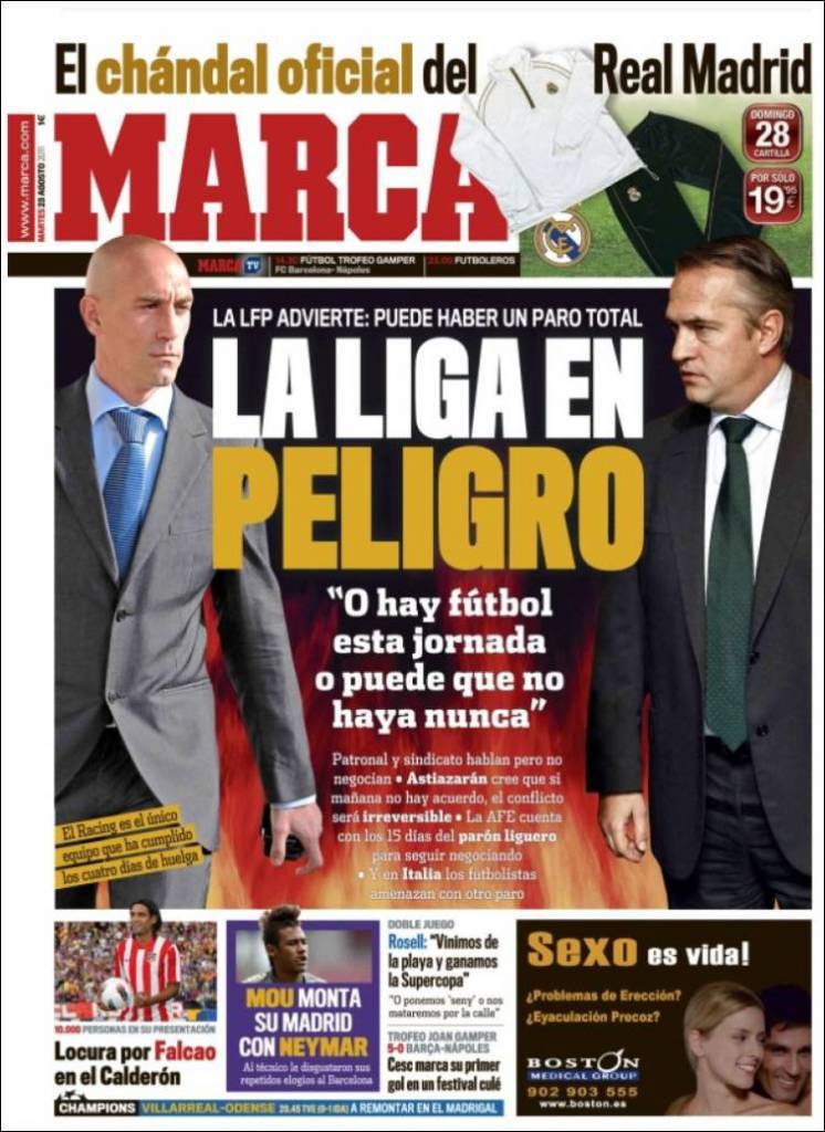 MARCA LIGA – La Liga è in grande pericolo, il campionato spagnolo rischia di non partire più.