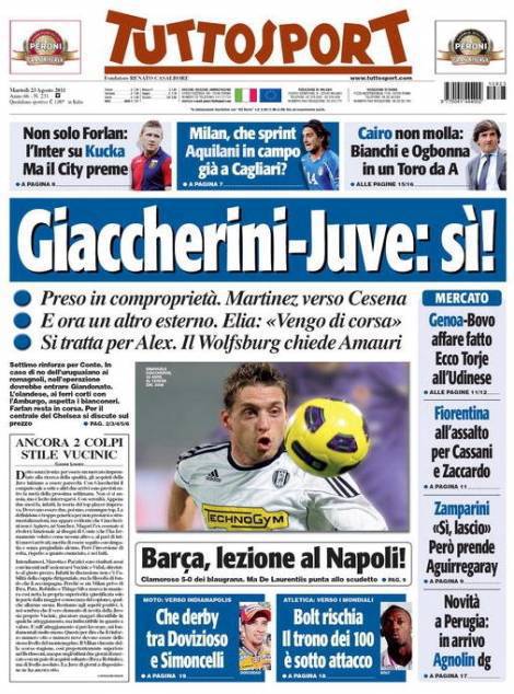 TUTTOSPORT JUVENTUS – La Juventus ha praticamente preso l’esterno del Cesena Giaccherini che arriverà in comproprietà.