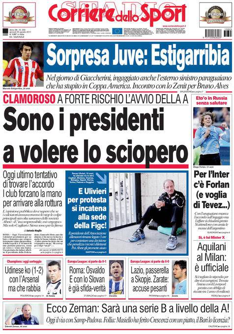 CORRIERE CALCIO SERIE A – Sul Corriere dello Sport si parla dello sciopero ma secondo il quotidiano romano sarebbero i presidenti a chiedere la rottura.