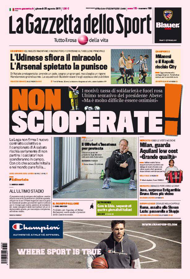 GAZZETTA SCIOPERO SERIE A – Sulla Gazzetta dello Sport si parla del possibile sciopero dei calciatori di Serie A.
