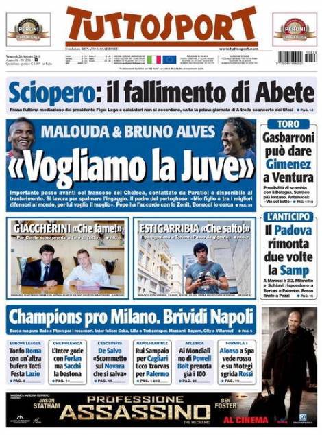 TUTTOSPORT MALOUDA BRUNO ALVES JUVENTUS – Sul quotidiano Tuttosport si parla del mercato Juventus con i possibili arrivi di Malouda e Bruno Alves.