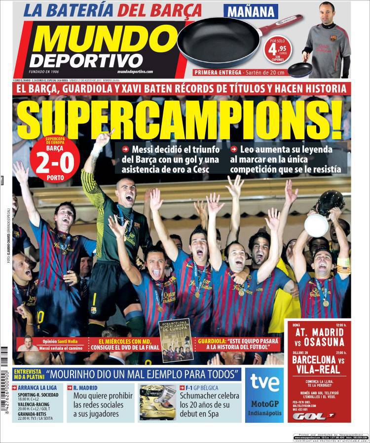MUNDO DEPORTIVO BARCELLONA – Il Barcellona vince la Supercoppa Europea contro il Porto battendo due a zero i portoghesi.