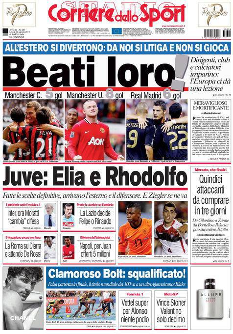 CORRIERE CALCIO – Sul Corriere dello Sport si parla del calcio estero con City, United e Real Madrid che vincono con valanghe di gol.