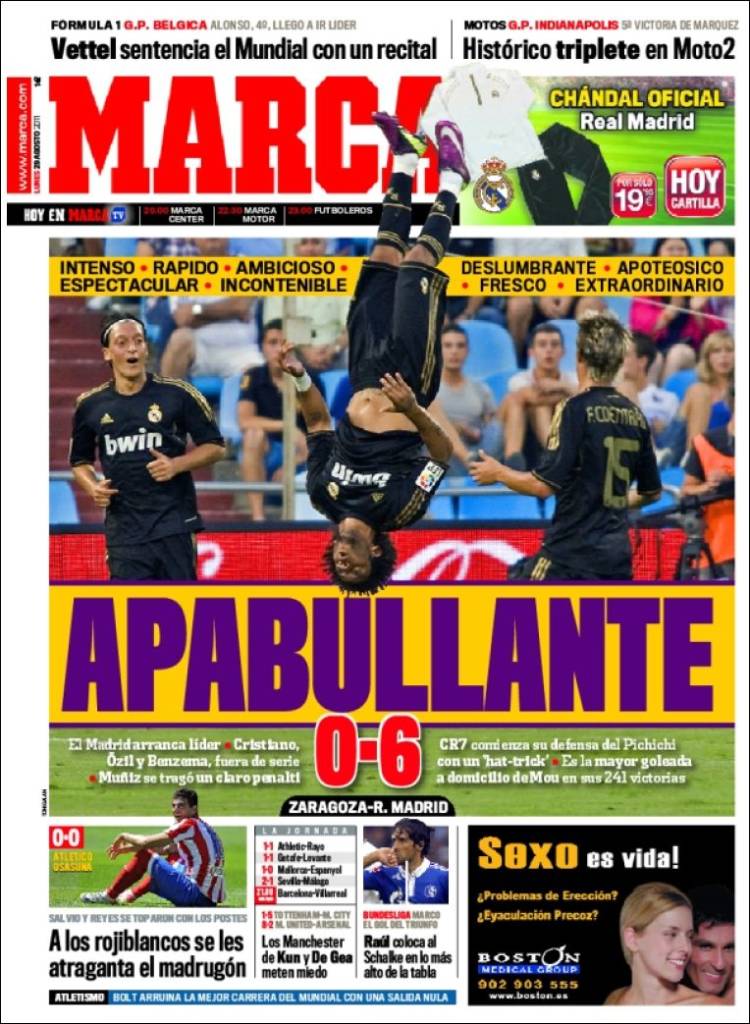 MARCA REAL MADRID – Sul quotidiano spagnolo Marca si parla del Real Madrid che vince sei a zero in casa del Saragozza.