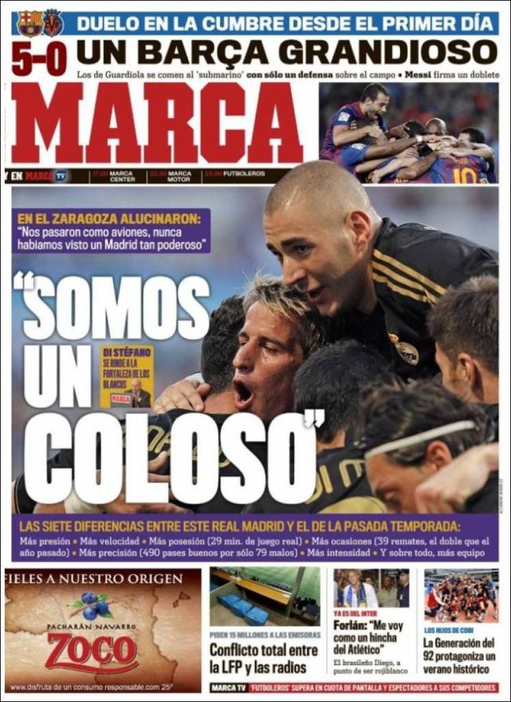 MARCA REAL MADRID – Grande euforia al Real Madrid dopo la grande vittoria contro la Real Saragozza nella prima di campionato.