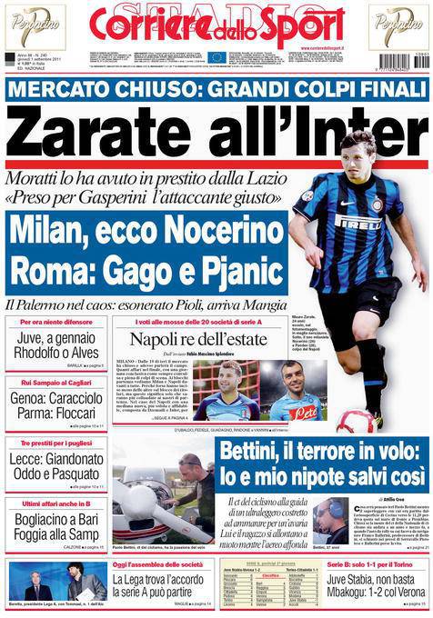 CORRIERE ZARATE INTER – Anche il Corriere dello Sport parla di Zarate all’Inter. L’ex giocatore della Lazio arriva in prestito.