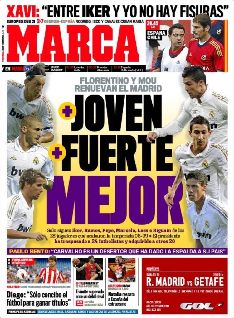 MARCA REAL MADRID – Sul quotidiano spagnolo Marca si parla del Real Madrid che è stato rinnovato da Josè Mourinho.