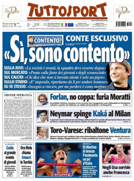 TUTTOSPORT CONTENTO – E’ arrivata sull’edizione di quest’oggi l’immediata risposta di Antonio Conte, a cui il quotidiano Tuttosport aveva chiesto ieri un parere sul mercato della Juventus.
