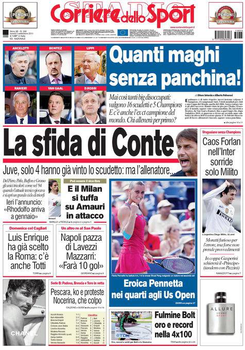CORRIERE CONTE JUVENTUS – Sul Corriere dello Sport si parla della sfida di Conte, tecnico della Juventus, che vuole vincere lo Scudetto.
