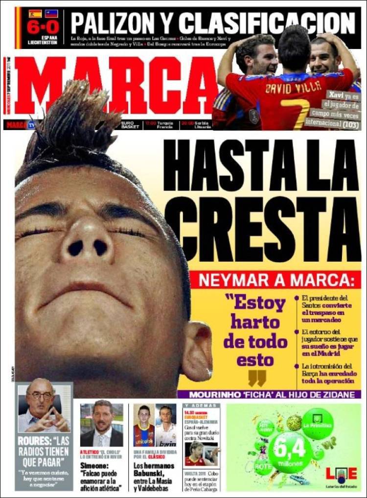 RASSEGNA STAMPA MARCA DEPORTIVO NEYMAR – Neymar, il nuovo talento del calcio brasiliano, si racconta in un’intervista rilasciata a Marca.