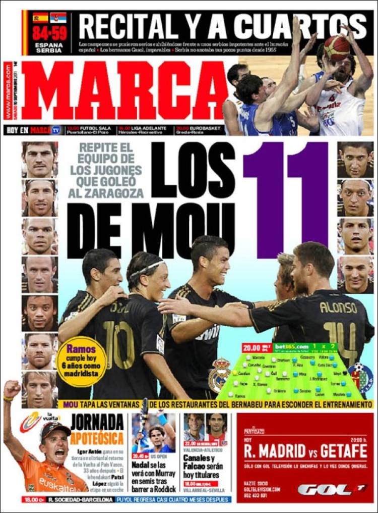 MARCA MOURINHO – Questa sera il Real Madrid giocherà contro il Getafe, Mourinho conferma la stessa squadra che ha asfaltato il Saragozza.