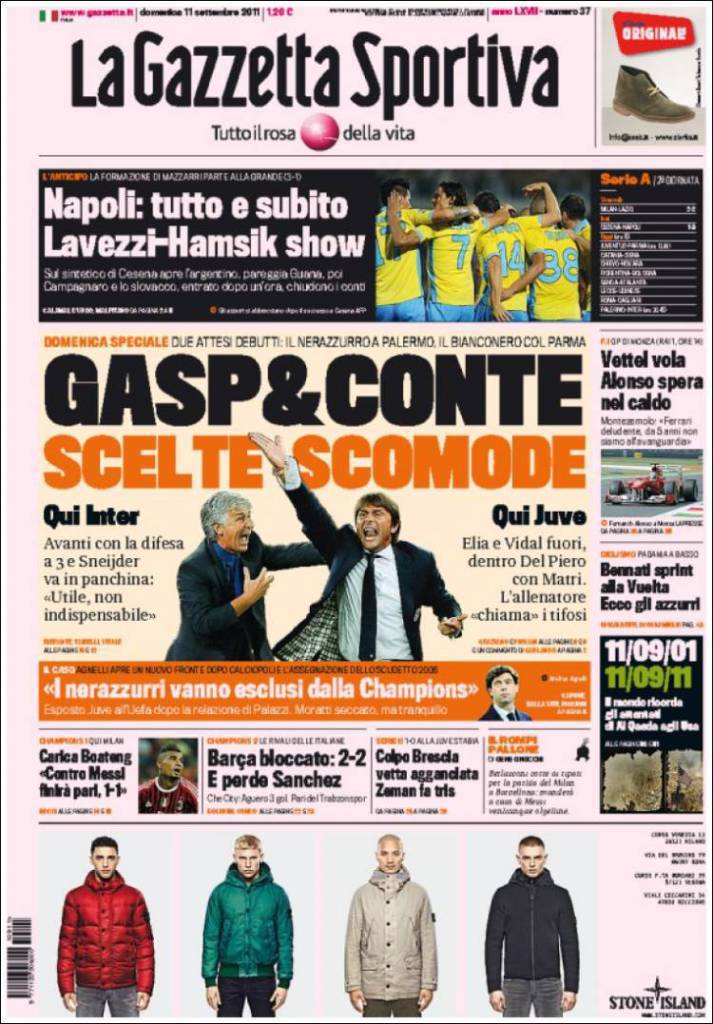GAZZETTA DELLO SPORT GASPERINI CONTE – Quest’oggi Inter e Juventus vedranno l’esordio sulla propria panchina di due nuovi tecnici: Giampiero Gasperini ed Antonio Conte. A loro la Gazzetta dello sport dedica la prima pagina.