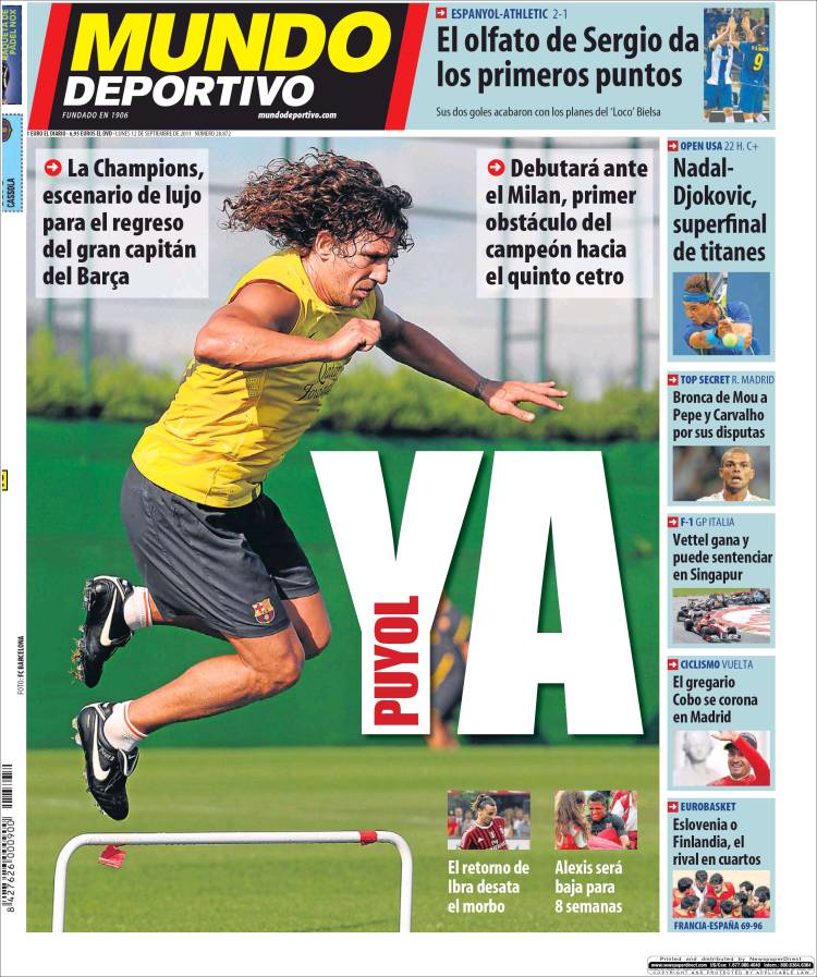 MUNDO DEPORTIVO PUYOL – Sul quotidiano Mundo Deportivo si parla di Puyol che giocherà contro il Milan in Champions.