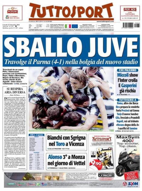 TUTTOSPORT JUVENTUS – Anche Tuttosport celebra il quattro a uno della Juventus sul Parma.