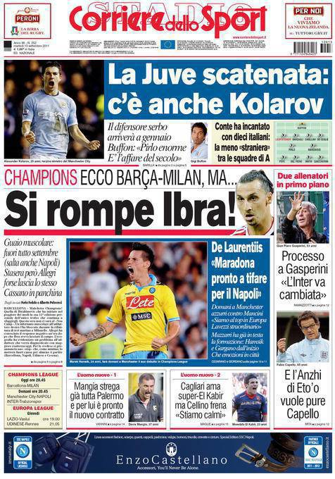 Corriere dello Sport: Juventus scatenata, c’è anche Kolarov 13/09/2011 di admin RASSEGNA STAMPA CORRIERE DELLO SPORT JUVENTUS KOLAROV – La Juventus si coccola Pirlo e pensa già ai colpi per rinforzare la difesa a gennaio. Nel mirino c’è Kolarov, terzino sinistro del Manchester City. Paolo Bardelli – calciomercatonews.com