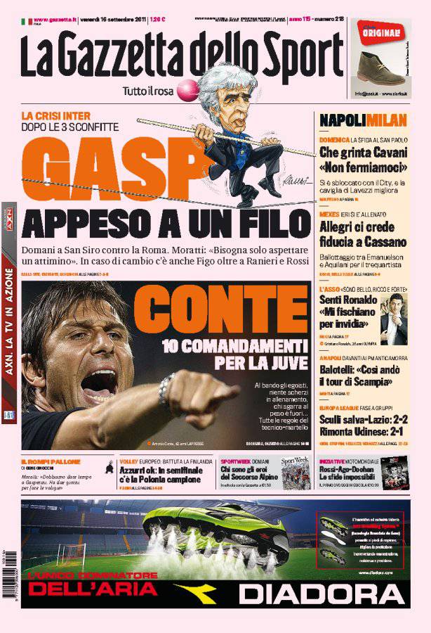 GAZZETTA GASPERINI – Gasperini dovrà assolutamente vincere con la sua Inter contro la Roma altrimenti potrebbe saltare.