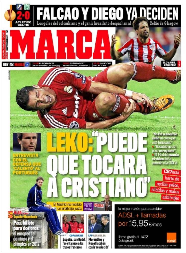 MARCA CRISTIANO RONALDO – Sul quotidiano Marca intervista a Leko, difensore del Getafe autore di un brutto fallo su Ronaldo.