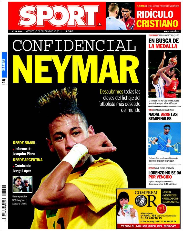 SPORT NEYMAR – Sul quotidiano Sport si parla della strategia Barcellona per battere Neymar.