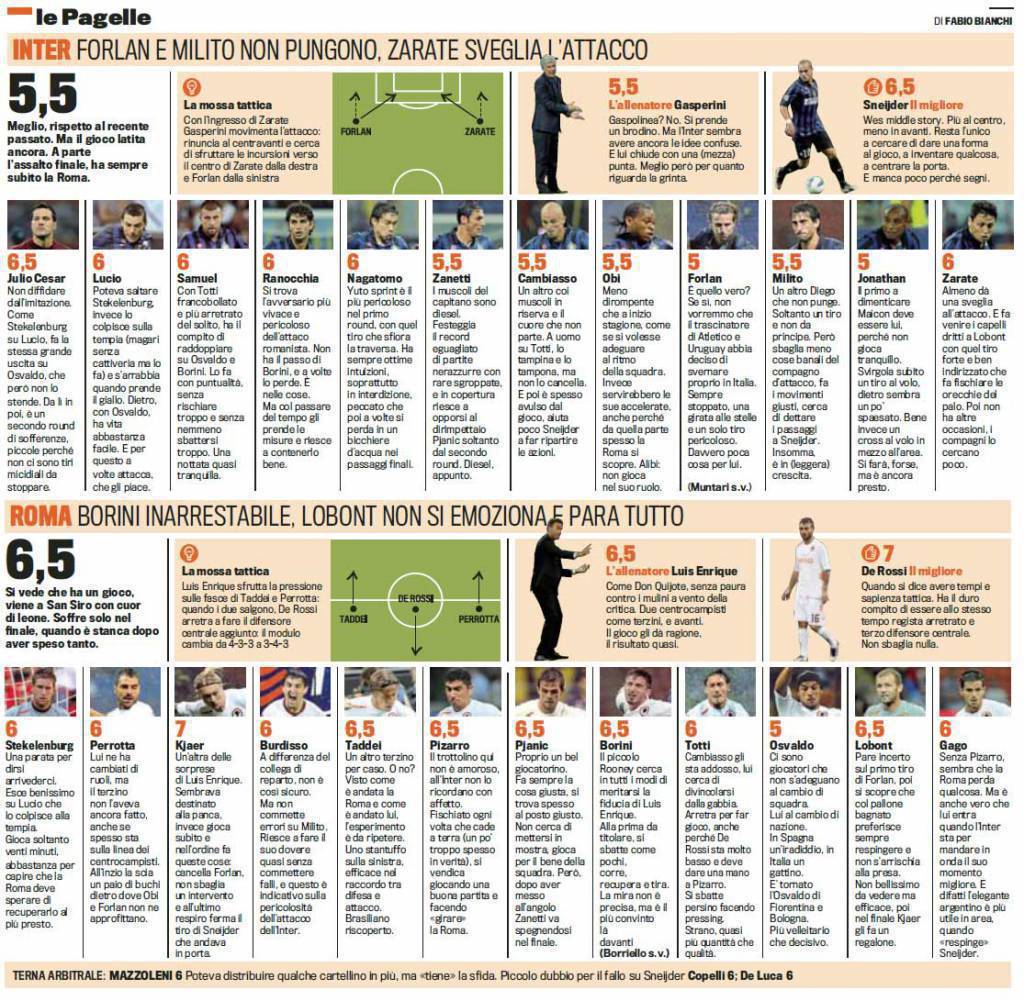 INTER ROMA GAZZETTA DELLO SPORT FOTO VOTI PAGELLE – Uno zero a zero che non accontenta nessuno delle due squadre quello di ieri sera tra Inter e Roma. Leggiamo insisme i voti pubblicati quest’oggi dalla Redazione della Gazzetta dello Sport.