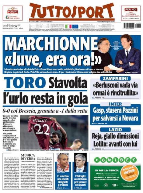 TUTTOSPORT MARCHIONNE JUVENTUS – Su Tuttosport intervista esclusiva a Marchionne, dirigente Fiat, che ha spronato la Juventus.