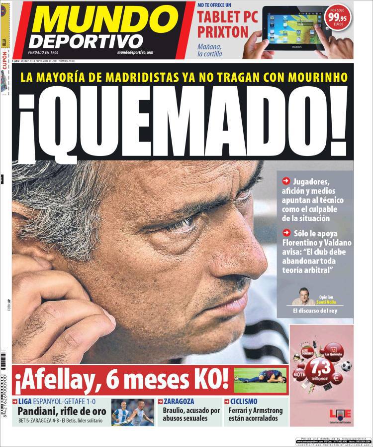 MUNDO DEPORTIVO MOURINHO – Sul quotidiano Mundo Deportivo si parla di Mourinho che secondo la stampa catalan si è ormai bruciato.