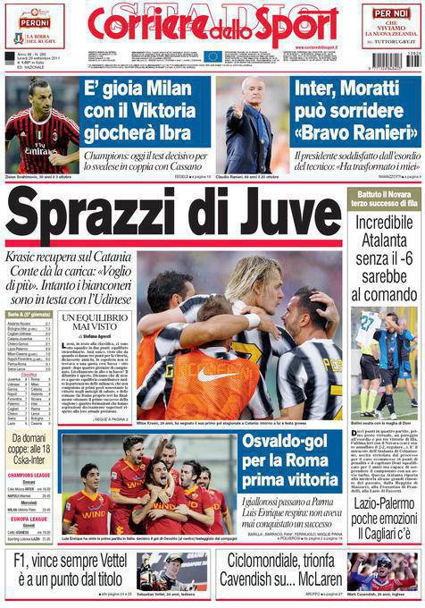 CORRIERE JUVENTUS – Sul Corriere dello Sport si parla della Juventus che pareggia a uno a uno a Catania contro i siciliani.