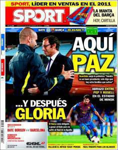 RASSEGNA STAMPA SPORT CHAMPIONS – Un abbraccio per stemperare le polemiche, quello tra Guardiola e Rosell, una pace che servirà per affrontare al meglio la trasferta bielorussa sul campo del Bate Borisov.