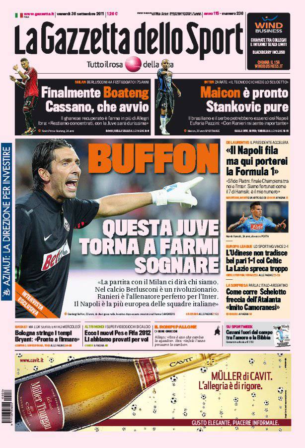 GAZZETTA BUFFON – Sulla Gazzetta dello Sport si parla di Buffon che ha parlato della Juventus di Conte.