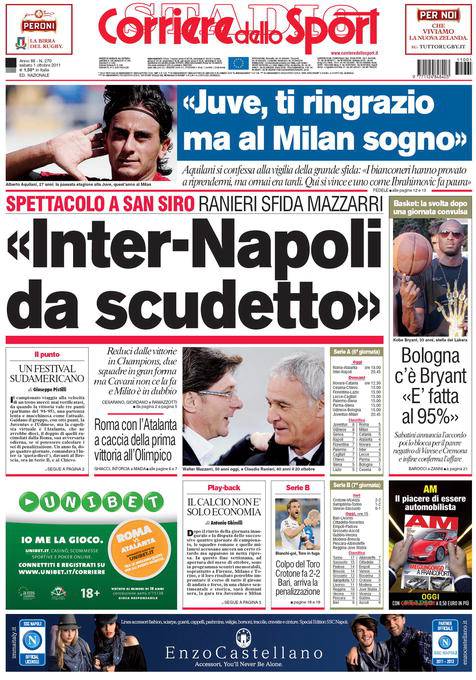 CORRIERE INTER NAPOLI – Sul Corriere dello Sport si parla di Inter e Napoli con Ranieri che ha parlato di sfida Scudetto.