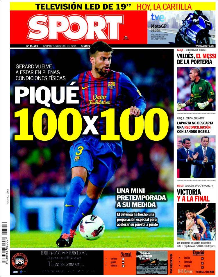 SPORT PIQUE’ – Sul quotidiano Sport si parla di Piquè che tornerà in campo solo al 100%.