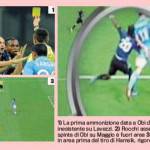 Il disastro Altro sbaglio di Rocchi al 33′: non vede uno sgambetto di Zanetti da ammonizione su Lavezzi al limite dell’area. Al 37′ Chivu stende Lavezzi: giallo ok. La partita deraglia al 41′ quando Rocchi non aiutato da Nicoletti dà un rigore al Napoli per la spinta di Obi a Maggio: il fallo è nettamente fuori area. Oltre al danno la beffa: per Obi arriva il secondo giallo. Non solo, il rigore andava ripetuto perché Campagnaro insieme con Samuel entra in area prima della battuta di Hamsik. Lo svantaggio fa saltare i nervi all’Inter: ammonito Zanetti per proteste dopo un fallo laterale dato al Napoli. E poi è Julio Cesar a scagliarsi in modo veemente contro Rocchi probabilmente perché il portiere si era accorto della irregolarità di Campagnaro: arriva l’ammonizione, ma ci stava anche il rosso. I torti arbitrali fanno perdere la calma anche a Ranieri che discute con l’arbitro a fine primo tempo: espulso. Nella ripresa clima meno infuocato. Pazzini se la prende per due segnalazioni di fuorigioco di Nicoletti, ma ha ragione l’assistente. Al 29′ ammonito Mascara per perdita di tempo. Bravo ancora Romagnoli in occasione del 3-0 di Hamsik tenuto in gioco da Maicon.