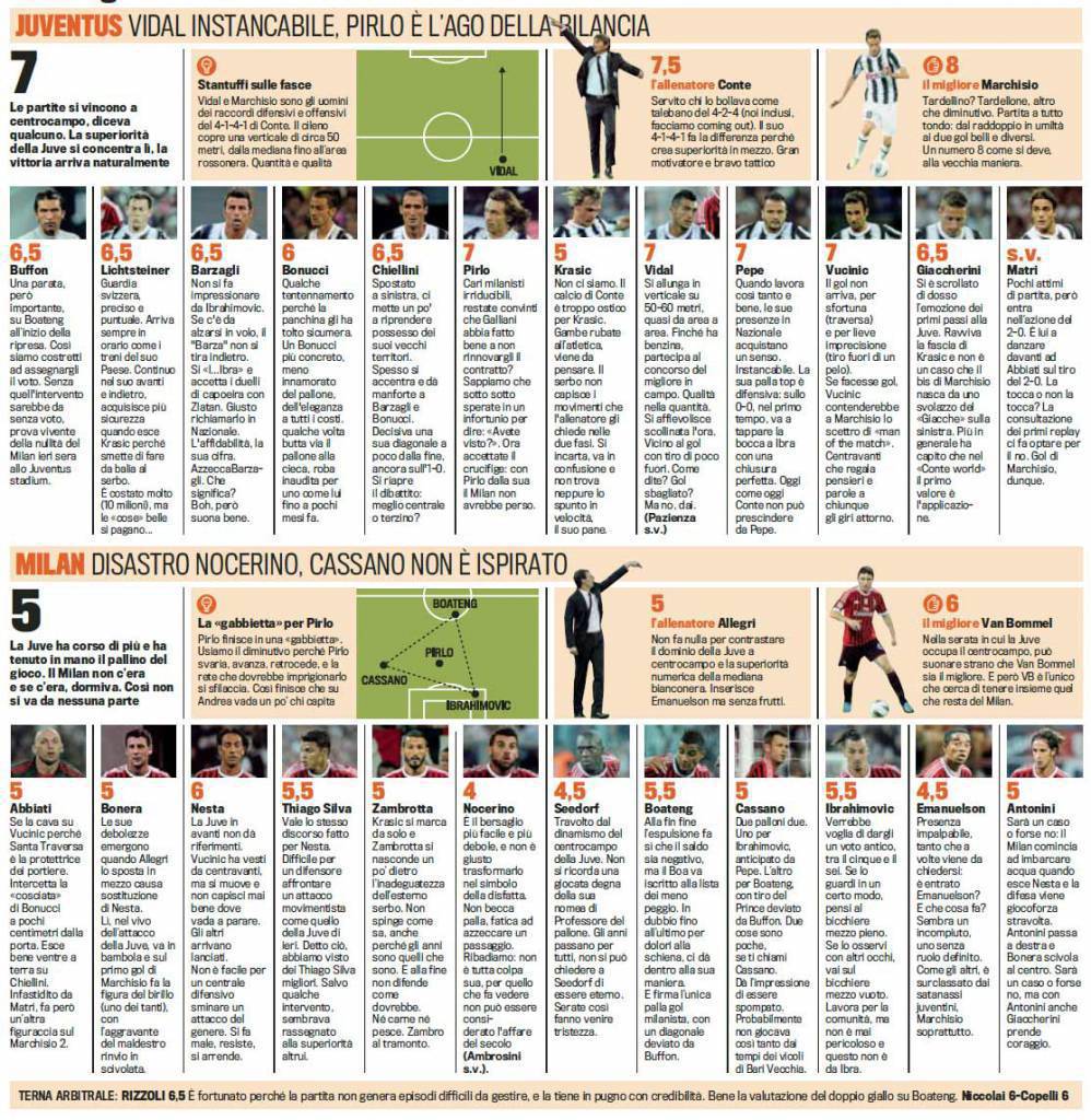 FANTACALCIO JUVENTUS MILAN VOTI PAGELLE GAZZETTA – Sulla Gazzetta dello Sport voti e pagelle del match tra Juventus e Milan. Migliore in campo Marchisio, nel Milan Nocerino è il peggiore.