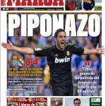 Marca: Piponazo 03/10/2011 di Ruggieri MARCA HIGUAIN – Sul quotidiano Marca si parla di Higuain che segna una tripletta importante nel quattro a zero del Real Madrid sull’Espanyol. Claudio Ruggieri – www.calciomercatonews.com