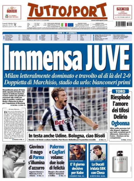 TUTTOSPORT JUVENTUS – Ovviamente anche Tuttosport rende merito alla grande vittoria della Juventus sul Milan per due a zero.
