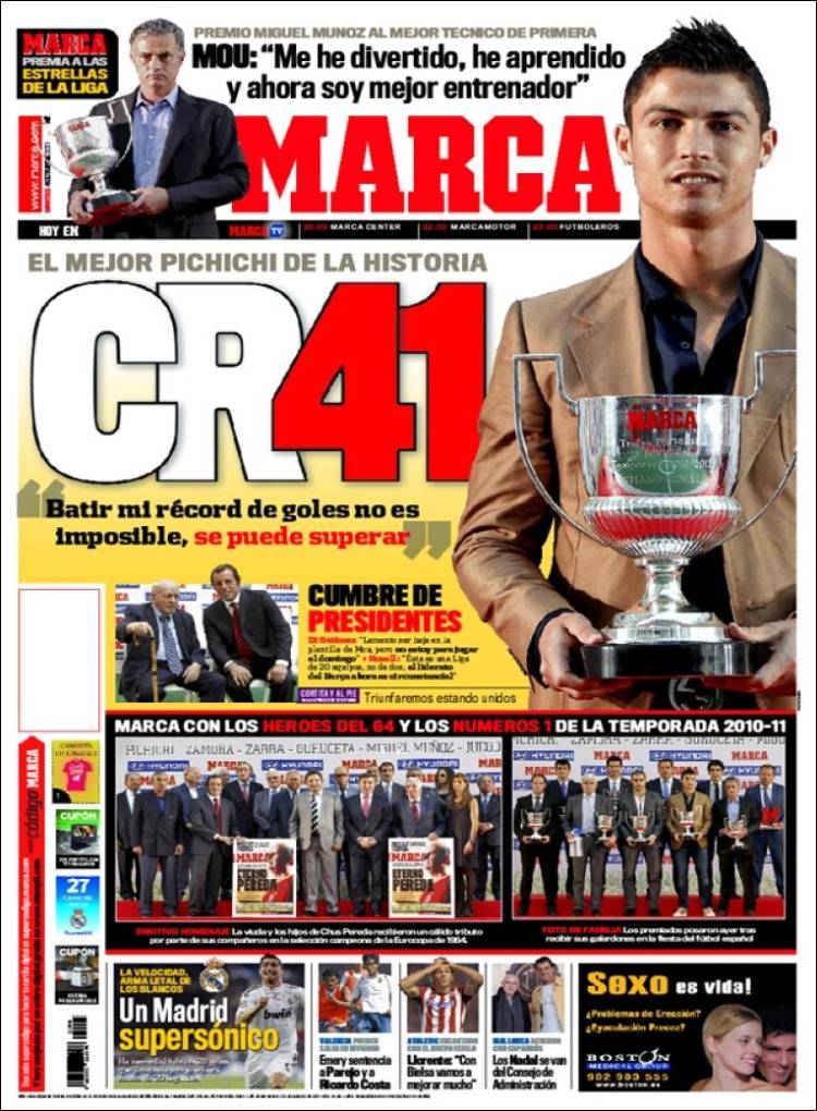 MARCA RONALDO – Il quotidiano spagnolo Marca ha premiato Cristiano Ronaldo come miglior marcatore della storia.