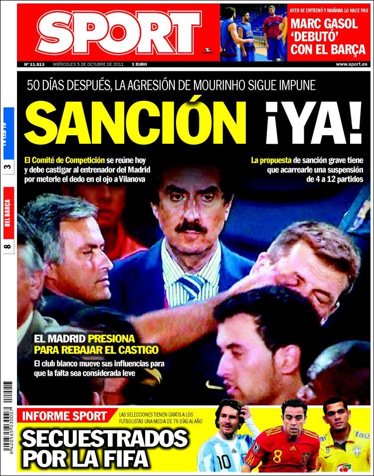 SPORT MOURINHO – Oggi si riunisce il Comitato della Liga per decidere la sanzione nei confronti di Mourinho per l’aggressione al vice di Guardiola, Vilanova.