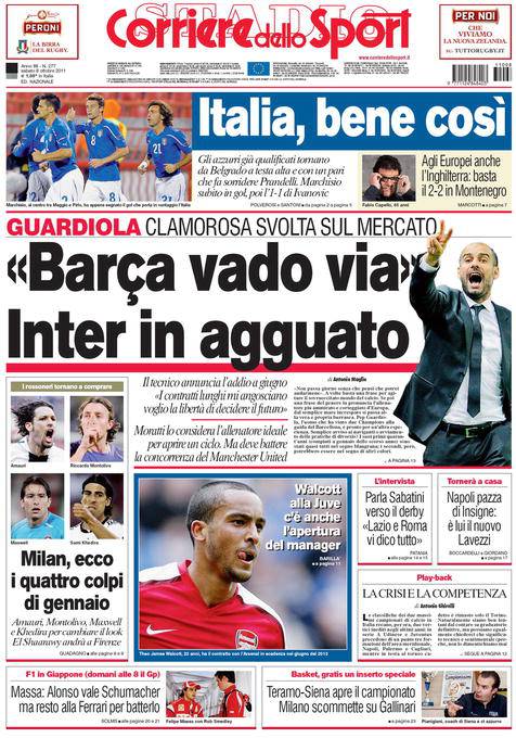 CORRIERE INTER GUARDIOLA – Sul Corriere dello Sport si parla di Guardiola, tecnico del Barcellona che ha dichiarato di poter andare via a fine stagione.
