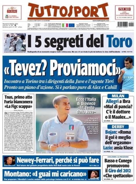 TUTTOSPORT TEVEZ – Su Tuttosport si parla di Carlitos Tevez, attaccante del Manchester City che piace alla Juventus.