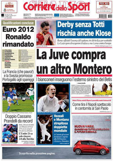 CORRIERE JUVENTUS MONTERO – Sul Corriere dello Sport si parla del calciomercato Juventus con l’acquisto di Montero del Betis.