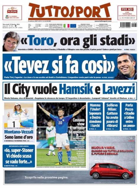 TUTTOSPORT TEVEZ – Su Tuttosport si parla di Tevez che piace molto alla Juventus.